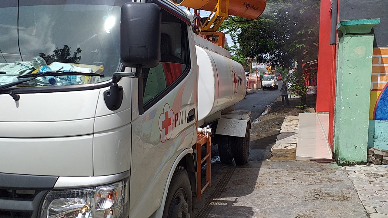 JEMBER - Ditengah pandemi yang tren nya terus meningkat di Kabupaten Jember, Palang Merah Indonesia (PMI) Jember terus melakukan penyemprotran disinfektan menggunakan kendaraan gunner.