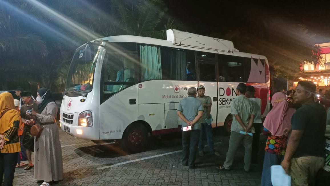 Kegiatan sendiri dilakukan setelah salat tarawih, hal itu dilakukan pihak PMI agar masyarakat yang datang dan antusias cukup rame.