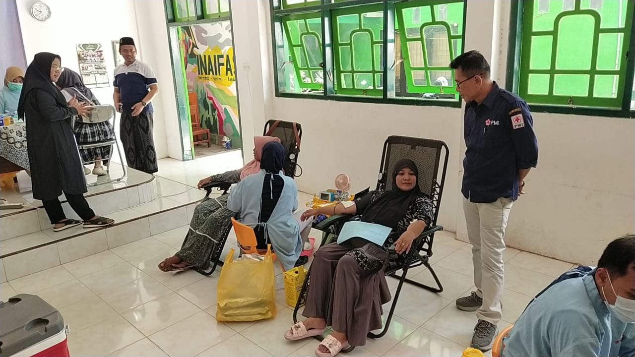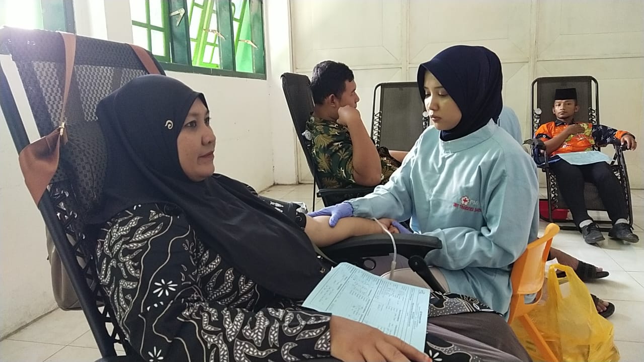 PMI JEMBER - Sejumlah santri, mahasiswa, dosen dan masyarakat sekitar Pondok Pesantren Al-Falah As-Sunniyah (UAS), Kecamatan Kencong, Kabupaten Jember antusias ikut aksi donor darah Kamis (23/1025). Donor darah untuk kali pertama ditempatkan di aula Universitas Al-Falah As-Sunniyah dan menjadi bagian dari rangkaian Harlah UAS ke-27.