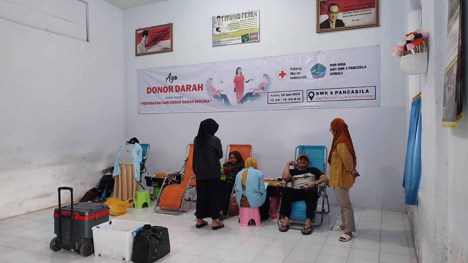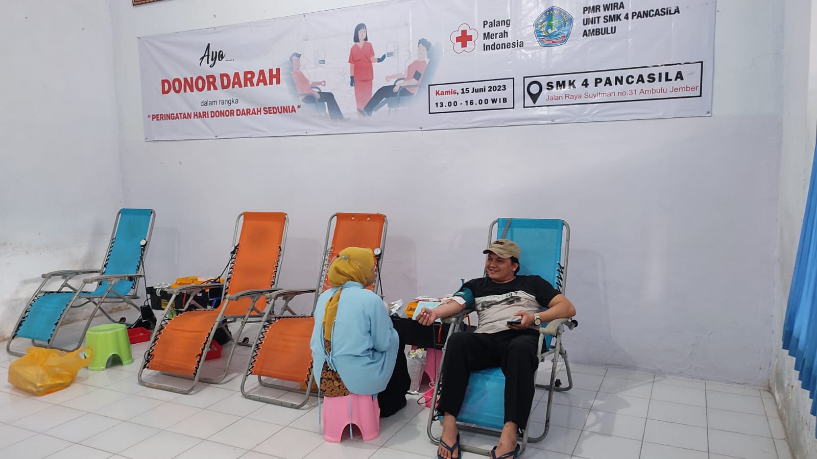 PMI JEMBER - PMR Wira SMK 4 Pancasila Ambulu selenggarakan donor darah sukarela (DDS) dalam rangka memperingati Hari Donor Darah Sedunia Kamis, 15 Juni 2023. DDS merupakan bagian dari program kerja pengurus PMR Wira SMK 4 Pancasila Ambulu.