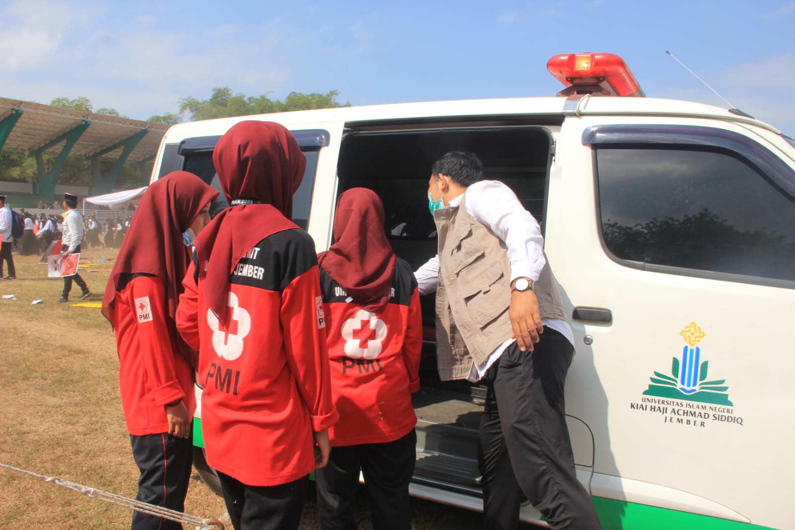 Personil KSR PMI Unit UIN KHAS Jember memberikan layanan evakuasi dan rujuk, penanganan P3K, serta membantu Tim Kesehatan Klinik UIN KHAS Jember. Alur koordinasi dan narahubung pun disebar untuk menjangkau seluruh pihak agar mendapat informasi dengan seksama.