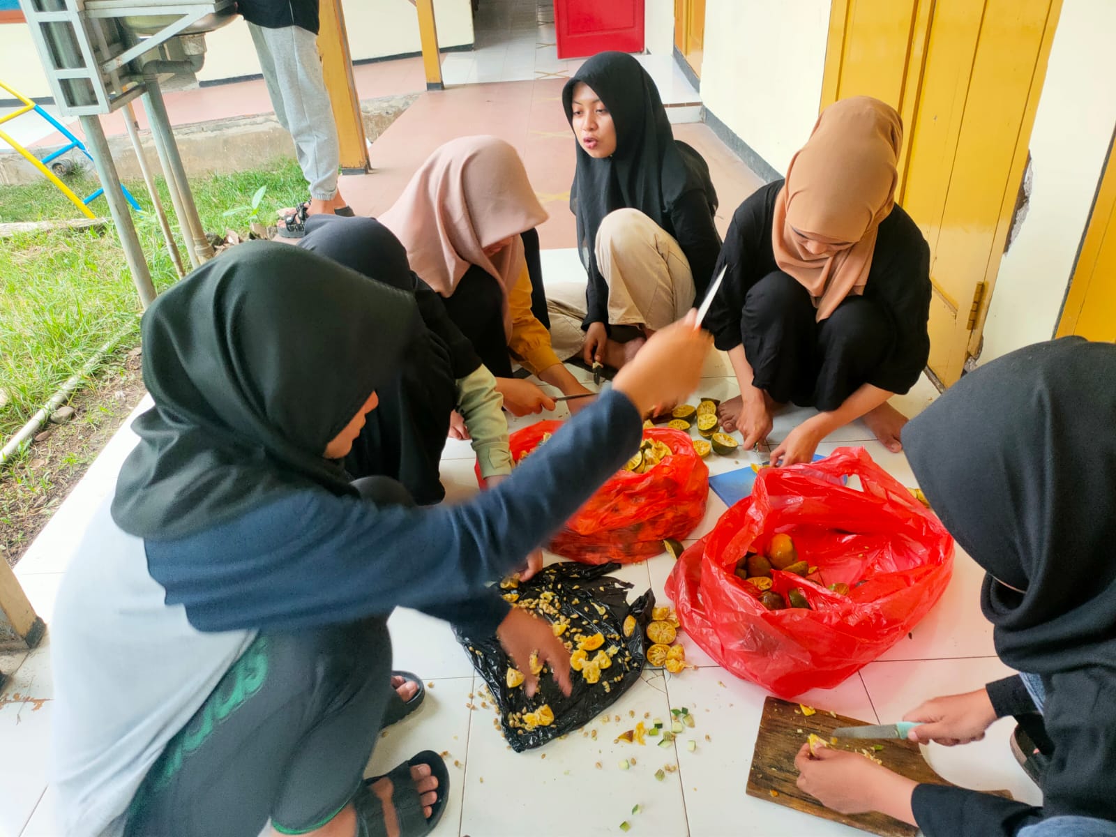 Dia menjelaskan, sejak siang mereka menyiapkan bahan yang diperlukan. Mulai dari memasang peralatan untuk memasak, mengumpulkan & menyiapkan bahan, hingga packing keseluruhan. Kemudian setelah segala keperluan siap, mereka membagi tugas untuk rangkaian kegiatan bakti sosial yang dilaksanakan secara serentak.