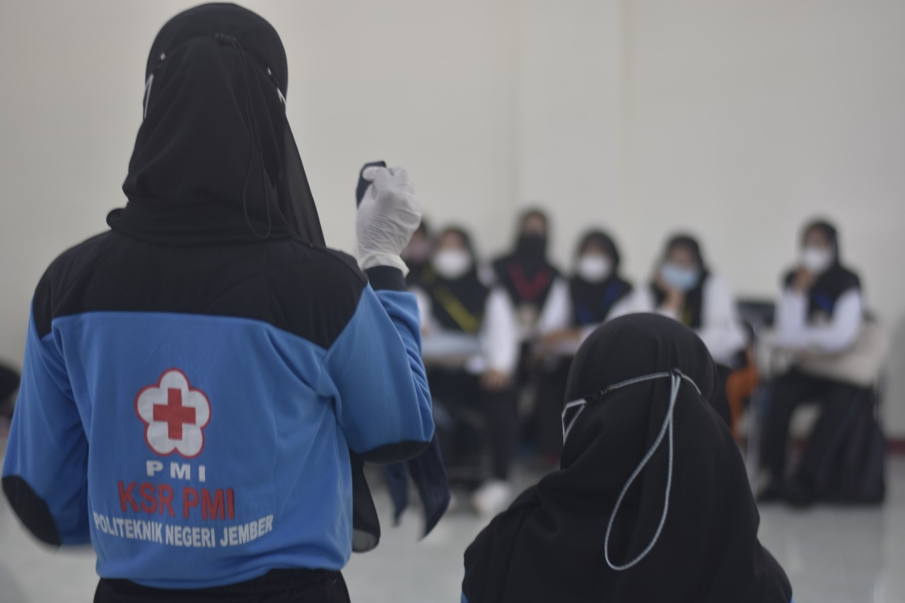 PMI JEMBER - Merebaknya Omicron, varian baru covid 19, direspon serius oleh mahasiswa yang tergabung Korps Sukarelawan ( KSR ) Unit Perguruan Tinggi Poli Tehnik Jember ( Polije). Sebanyak 46 mahasiswa direkrut dan dilatih untuk memperkuat jumlah KSR Polije, yang sudah bertindak di masa Covid 19 sebelumnya.