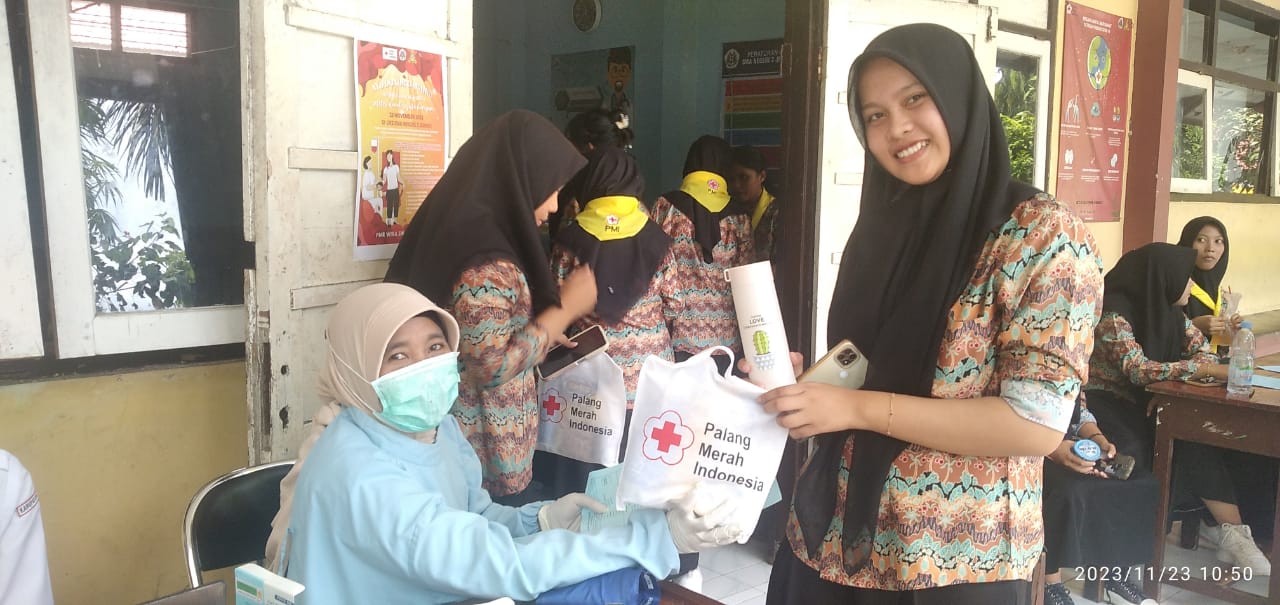 PMI JEMBER – Palang Merah Remaja (PMR) SMA Negeri 3 Jember memberikan souvenir cantik kepada relawan pendonor dalam acara donor darah sukarela Kamis, 23 November 2023. Tiap-tiap pendonor yang lolos screening mendapatkan suvenir berupa tempar air minum tumbler cantik warna-warni. Hasilnya, ada 39 pendonor pemula berhasil ambil bagian.