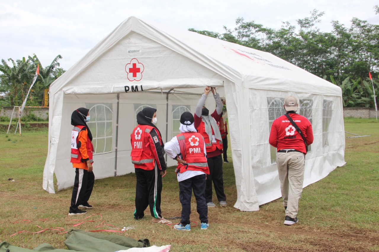 “Pada latihan tanggap darurat tuntas ini, seluruh kekuatan yang ada di PMI Jember kita libatkan mulai dari penanganan bencana, pelayanan kesehatan sampai menyediakan sarana seperti tenda pengungsian, dapur umum lengkap dengan tim gizi kita terjunkan semua pada latihan ini,” kata E.A Zaenal Muarzuki, SH, MH Ketua PMI Jember.