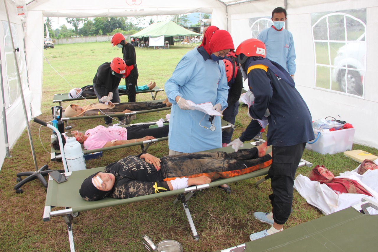 “PMI hadir dalam tanggap darurat tuntas, artinya kita ingin bisa dicover oleh PMI dari dapur umum, pos pengendalian, wash dan pengungsian dalam satu lokasi, jadi semua fungsi yang ada di PMI bisa dilaksanakan dimana idealnya seperti itu,” ujar Dr Edi Purwinarto, Sekretaris PMI Propinsi Jawa Timur yang turut hadir di latihan tersebut.