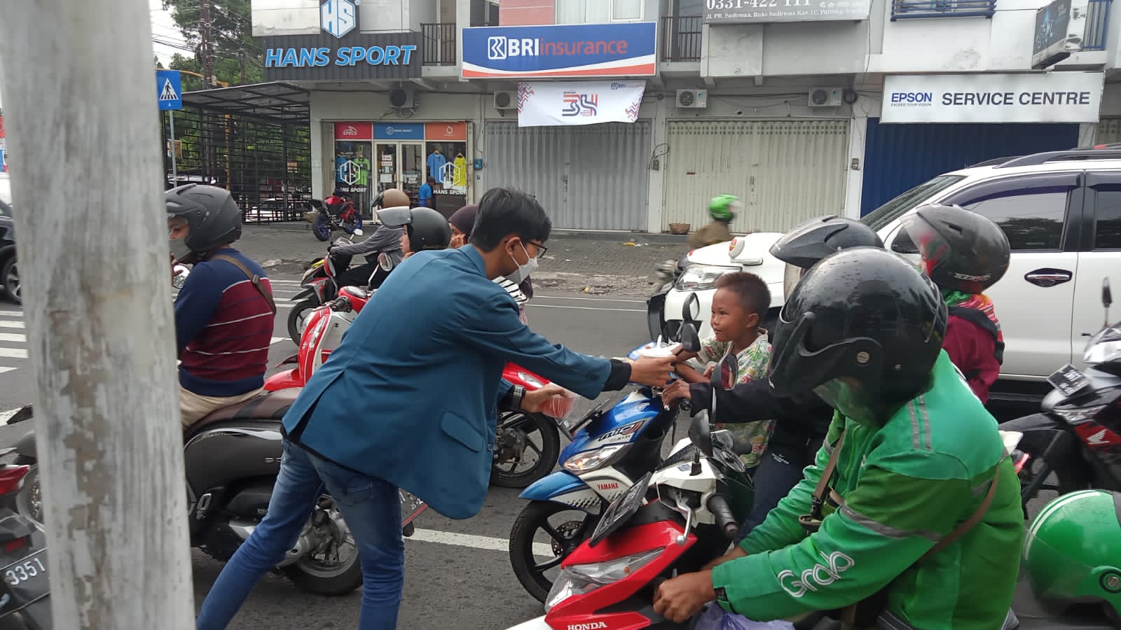 PMI JEMBER – PMR Wira SMAN 5 Jember gelar kegiatan bagi – bagi takjil dalam rangka semarakkan bulan suci Ramadhan di Simpang 4 Bhayangkara Jember, Selasa sore (16/4/). Sebanyak 25 pelajar SMAN 5 Jember yang tergabaung dalam PMR ini bergerak aktif, mengisi sisi kemanusiaan kepada masyarakat sekitar.