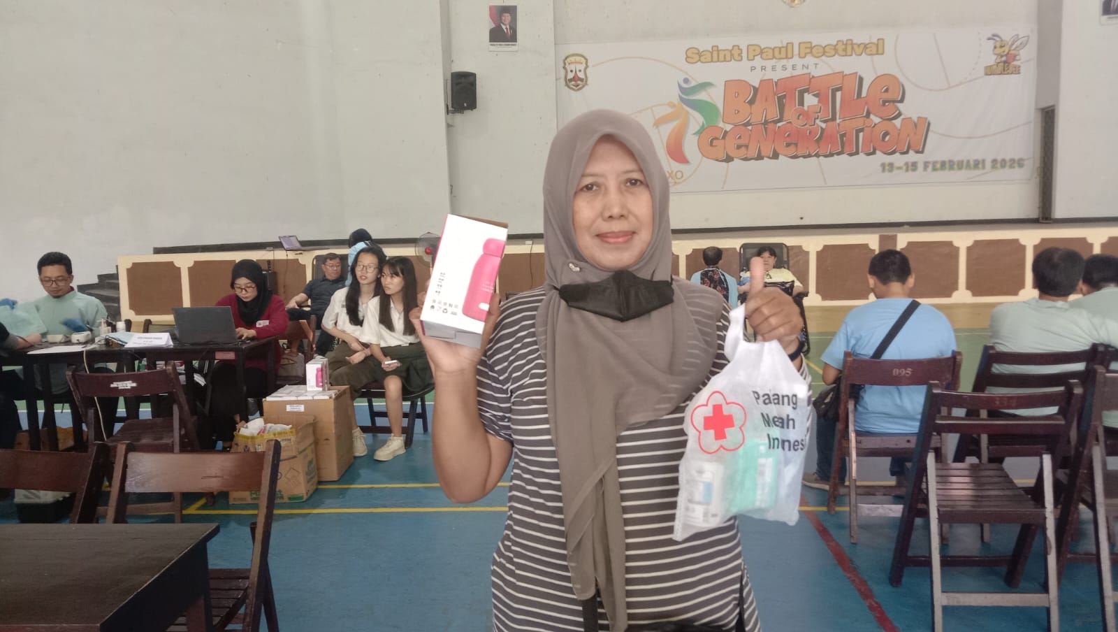 Pemandangan menarik terlihat dalam kegiatan donor darah yang digelar di SMAK Santo Paulus Jember baru-baru ini. Di antara para pendonor, terselip warga Muslim yang tetap antusias mendonorkan darahnya meski matahari sedang terik.