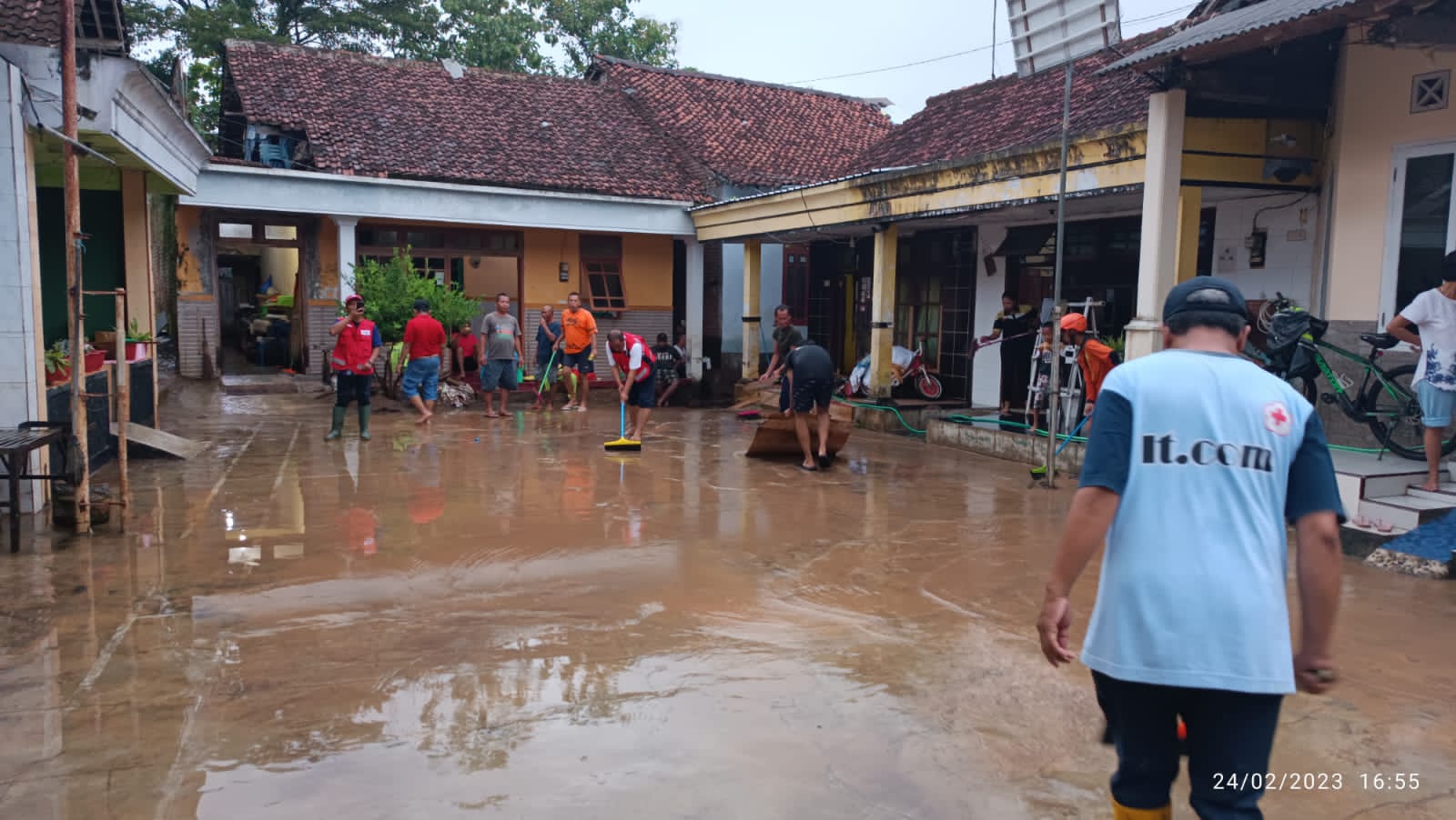 material lumpur. Pasca surutnya air, warga mulai bekerja sama untuk