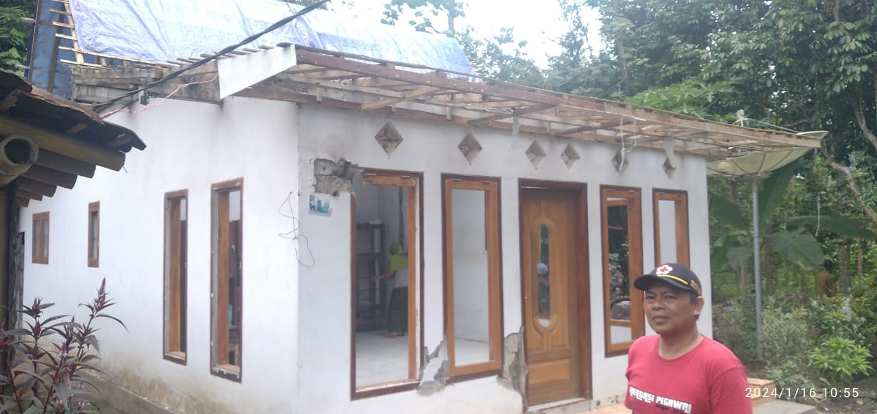 PMI JEMBER – Personil PMI Kabupaten Jember didampingi Muspika dan Ketua PMI Kecamatan Sumberjambe memberikan bantuan paket sembako kepada Matirejo, Selasa (16/1/2024). Bantuan tersebut untuk meringankan keluarga Matirejo yang saat ini kondisi rumahnya rusak berat akibat sambaran petir yang terjadi pada Selasa 9 Januari 2024 di Dusun Semek RT 01 / RW 11, Desa Sumberjambe, Kecamatan Sumberjambe.