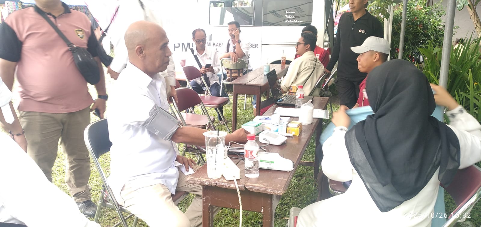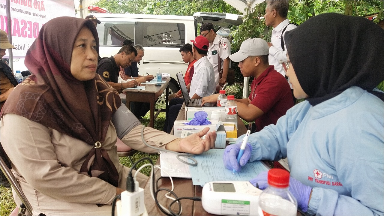PMI JEMBER – Puluhan jamaah muslimat, yang mayoritas adalah kalangan ibu-ibu atau 'emak-emak', menunjukkan semangat kemanusiaan yang tinggi dengan berpartisipasi dalam kegiatan donor darah di sela-sela Apel Kebangsaan yang digelar di Lapangan Argopuro, Kecamatan Panti, Jember, Minggu sore (26/10/25).
